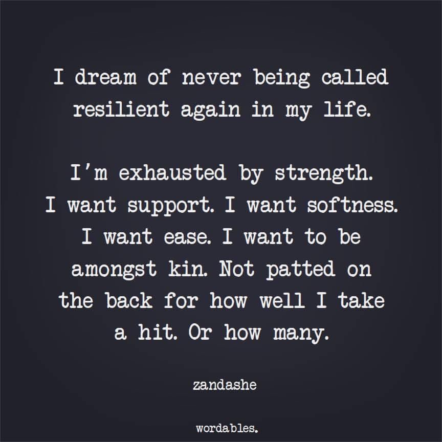 It’s flattering to be called resilient and feel validated when you are down but “resilience” being used as your main compliment time after time can leave you wanting in this way.